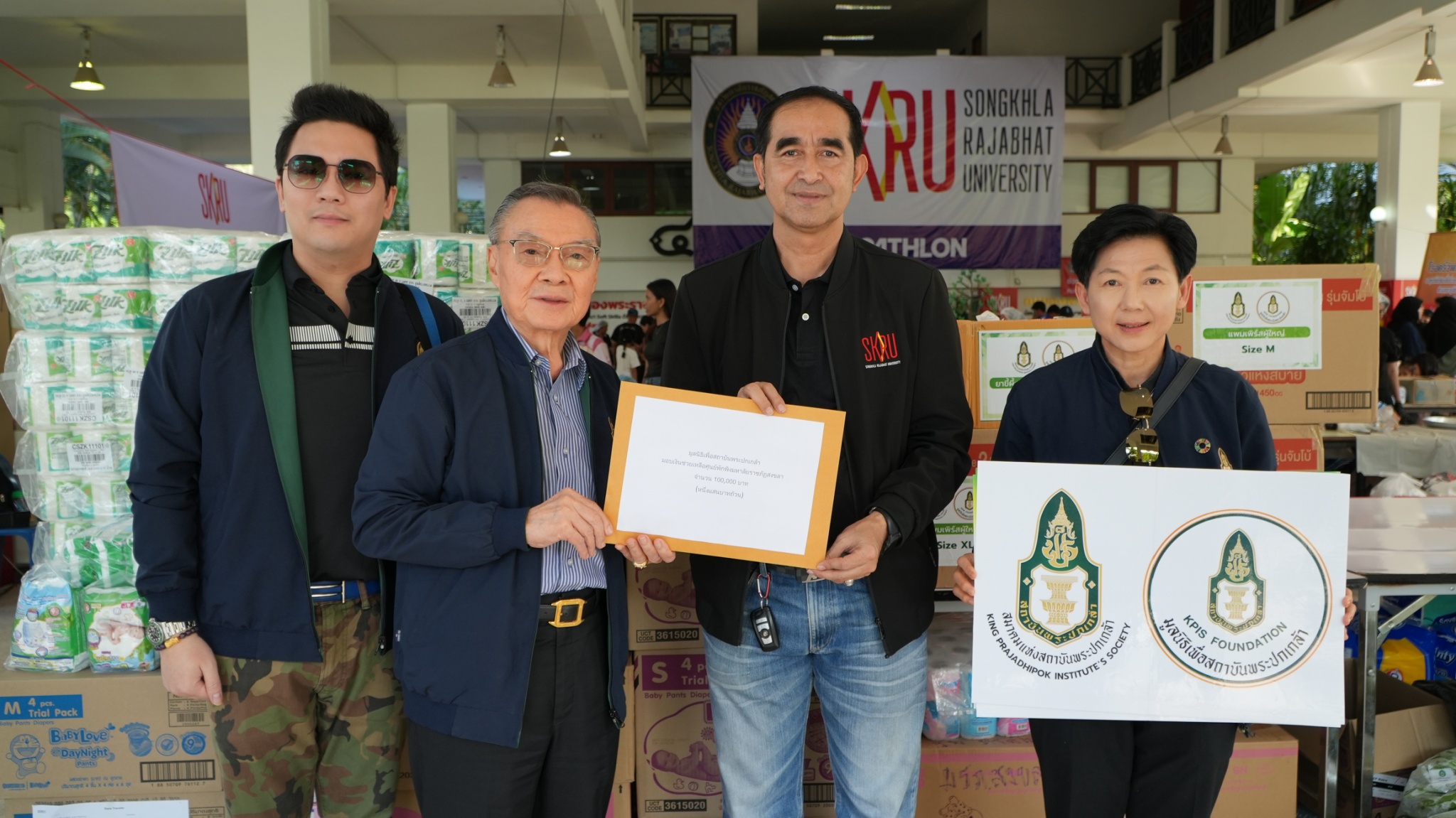 ในการนี้ ผู้ช่วยศาสตราจารย์พิเชษฐ์ จันทวี อธิการบดีมหาวิทยาลัยราชภัฏสงขลา พร้อมด้วยคณะอาจารย์ ได้ให้การต้อนรับและเป็นผู้รับมอบสิ่งของ และเงินสด ณ ศูนย์พักพิงชั่วคราว มหาวิทยาลัยราชภัฏสงขลา เพื่อส่งต่อและกระจายความช่วยเหลือไปยังผู้ประสบภัยในพื้นที่ต่าง ๆ อย่างเหมาะสมและเร่งด่วนที่สุด การดำเนินงานครั้งนี้สะท้อนถึงพลังแห่งความร่วมมือ ความเมตตา และน้ำใจจากทุกภาคส่วน ที่มุ่งช่วยเหลือพี่น้องประชาชนให้ผ่านพ้นวิกฤตครั้งนี้อย่างปลอดภัย และเป็นแรงสนับสนุนสำคัญในการฟื้นฟูชุมชนหลังน้ำลด สำหรับการส่งมอบสิ่งของบรรเทาทุกข์ ครั้งที่ 2 เพื่อเยียวยาหลังน้ำลด กำหนดนัดหมายไว้ ณ วันพฤหัสฯที่ 11 ธันวาคม 2568 สมาคมแห่งสถาบันพระปกเกล้า และมูลนิธิเพื่อสถาบันพระปกเกล้า ขอขอบพระคุณองค์กรนิติบุคคล ท่านประธานรุ่น คณะกรรมการกลาง คณะกรรมการบริหารและท่านสมาชิก ที่สนับสนุนงบประมาณเพื่อการนี้อย่างท่วมท้น ขออานิสงแห่งกุศลจิตจงดลบันดาลให้กิจการและครอบครัวท่านจงเจริญรุ่งเรืองยิ่ง ๆ ขึ้นตลอดไป