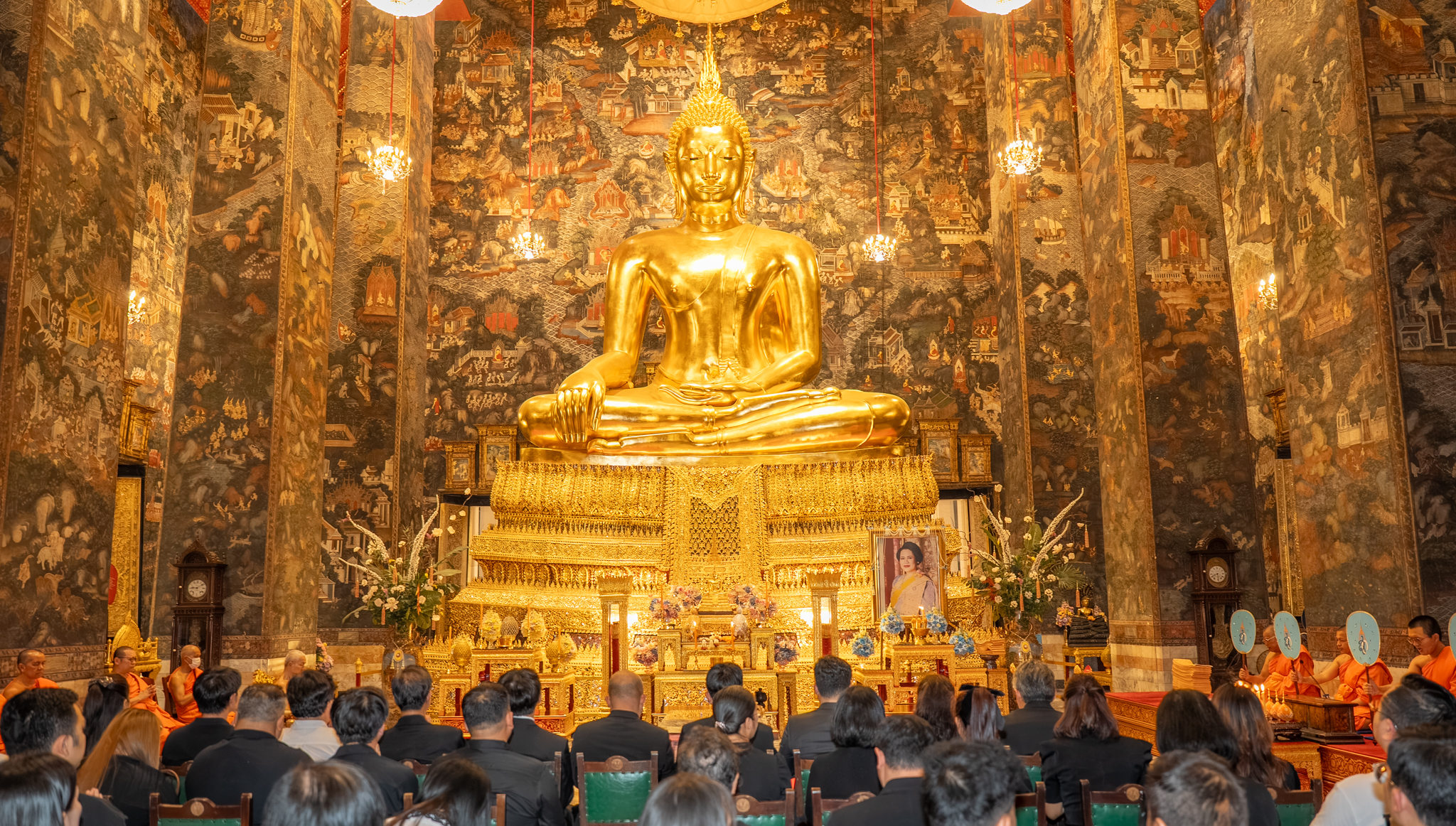 สำหรับการประกอบพิธีบำเพ็ญกุศลเพื่ออุทิศถวายเป็นพระราชกุศล แด่สมเด็จพระนางเจ้าสิริกิติ์ พระบรมราชินีนาถ พระบรมราชชนนีพันปีหลวง ทางคณะสงฆ์วัดสุทัศนเทพวราราม โดยพระเดชพระคุณพระพรหมวชิรมุนี (เชิด จิตฺตคุตฺโต) กรรมการมหาเถรสมาคม เจ้าอาวาสวัดสุทัศนเทพวราราม เป็นประธานฝ่ายสงฆ์ นำพุทธศาสนิกชน และประชาชน ร่วมกันเจริญจิตภาวนา อุทิศถวายเป็นพระราชกุศลแด่ สมเด็จพระนางเจ้าสิริกิติ์ พระบรมราชินีนาถ พระบรมราชชนนีพันปีหลวง โดยบรรยากาศภายในพิธีเปี่ยมด้วยความสำนึกในพระมหากรุณาธิคุณที่พระองค์ทรงมีต่อประเทศชาติ และประชาชน ซึ่งต่างร่วมกันแสดงความจงรักภักดี น้อมรำลึกถึงพระเมตตาธรรม และความเสียสละที่ทรงอุทิศพระวรกายเพื่อความผาสุกร่มเย็นของพสกนิกรตลอดพระชนม์ชีพ นับเป็นคุณูปการอันยิ่งใหญ่ต่อประเทศชาติและประชาชนชาวไทยอย่างหาที่สุดมิได้