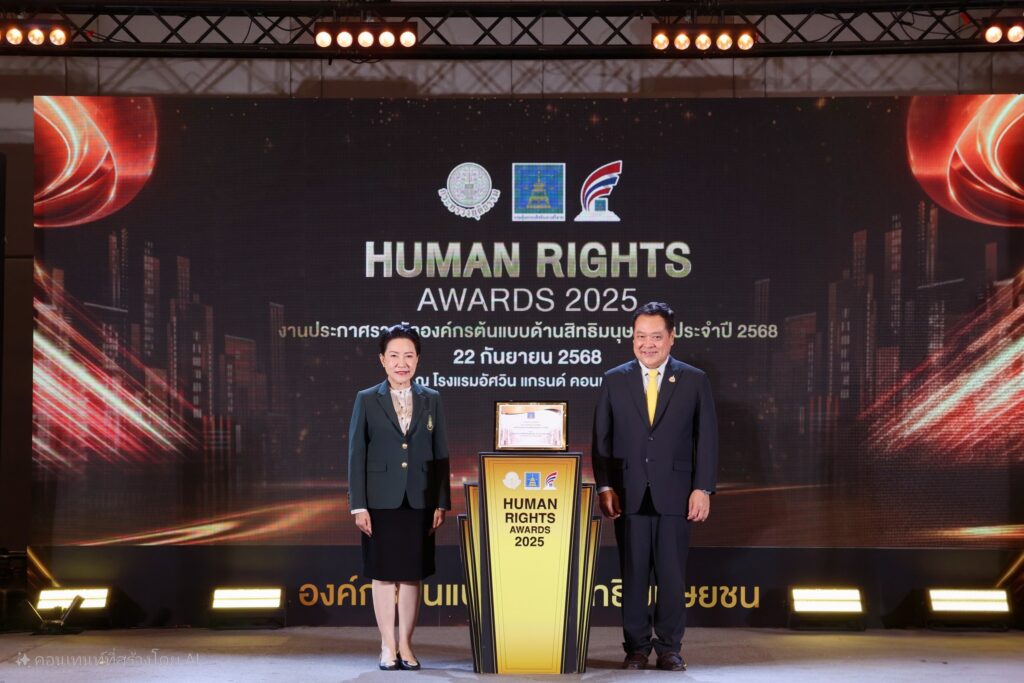 วันที่ 22 กันยายน 2568 เวลา 10.30 น. รางวัลองค์กรต้นแบบด้านสิทธิมนุษยชน ประจำปี 2568 สมาคมแห่งสถาบันพระปกเกล้า ได้รับรางวัลองค์กรต้นแบบด้านสิทธิมนุษยชน ประเภทองค์กรภาคประชาสังคม ในระดับ “ดี” เข้ารับรางวัลโดย ดร.ธิติมา หล่อพิพัฒน์ กรรมการสภาสถาบันผู้ทรงคุณวุฒิสถาบันพระปกเกล้าและนายกกิตติมศักดิ์ พร้อมด้วย ท่านมหรรณพ เดชวิทักษ์ นายกกิตติมศักดิ์ และดร. พรทิพย์ เตชะสมบูรณากิจ กรรมการบริหาร โดยมี พันตำรวจเอก ทวี สอดส่อง รัฐมนตรีว่าการกระทรวงยุติธรรม เป็นประธาน ณ ห้องอัศวินแกรนด์ บอลรูม โรงแรมอัศวิน แกรนด์ คอนเวนชั่น