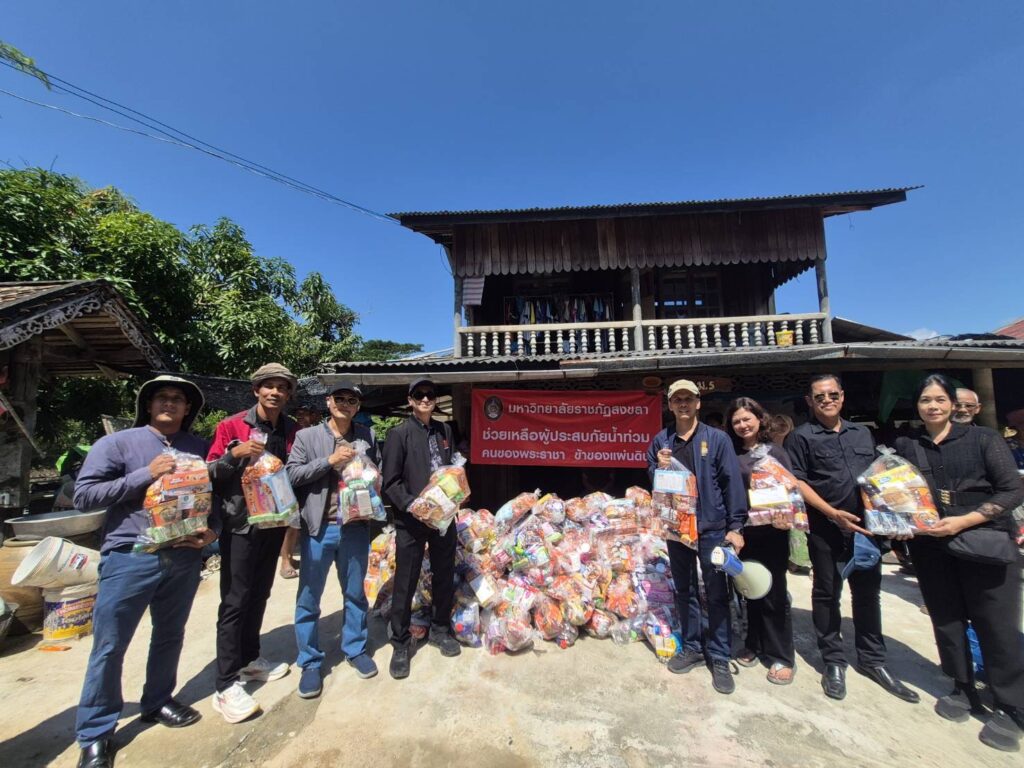 มูลนิธิเพื่อสถาบันพระปกเกล้า สมาคมแห่งสถาบันพระปกเกล้าร่วมกับมหาวิทยาลัยราชภัฏสงขลา โดยผู้ช่วยศาสตราจารย์พิเชษฐ์ จันทวี อธิการบดีมหาวิทยาลัยราชภัฏสงขลา และท่านที่ปรึกษาสมาคมแห่งสถาบันพระปกเกล้า คุณนนท์อนณ บัวขวัญโภคินกุล และคณาจารย์ ร่วมเดินทางไปแจกของและอาหารให้แก่ผู้ประสบภัย จำนวน 3,000 ชุด ในพื้นที่อำเภอสิงหนคร อำเภอกระแสสินธุ์ อำเภอสทิงพระ และอำเภอระโนด เมื่อวันที่ 2 ธันวาคม 2568